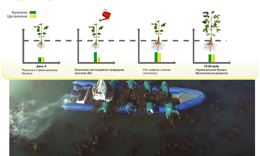 За рахунок високої концентрації ауксинів стимулюється активний розвиток кореневої системи. Синтез цитокінінів посилюється одночасно з розвитком кореневої системи, що забезпечує подальше збільшення надземної маси рослини.